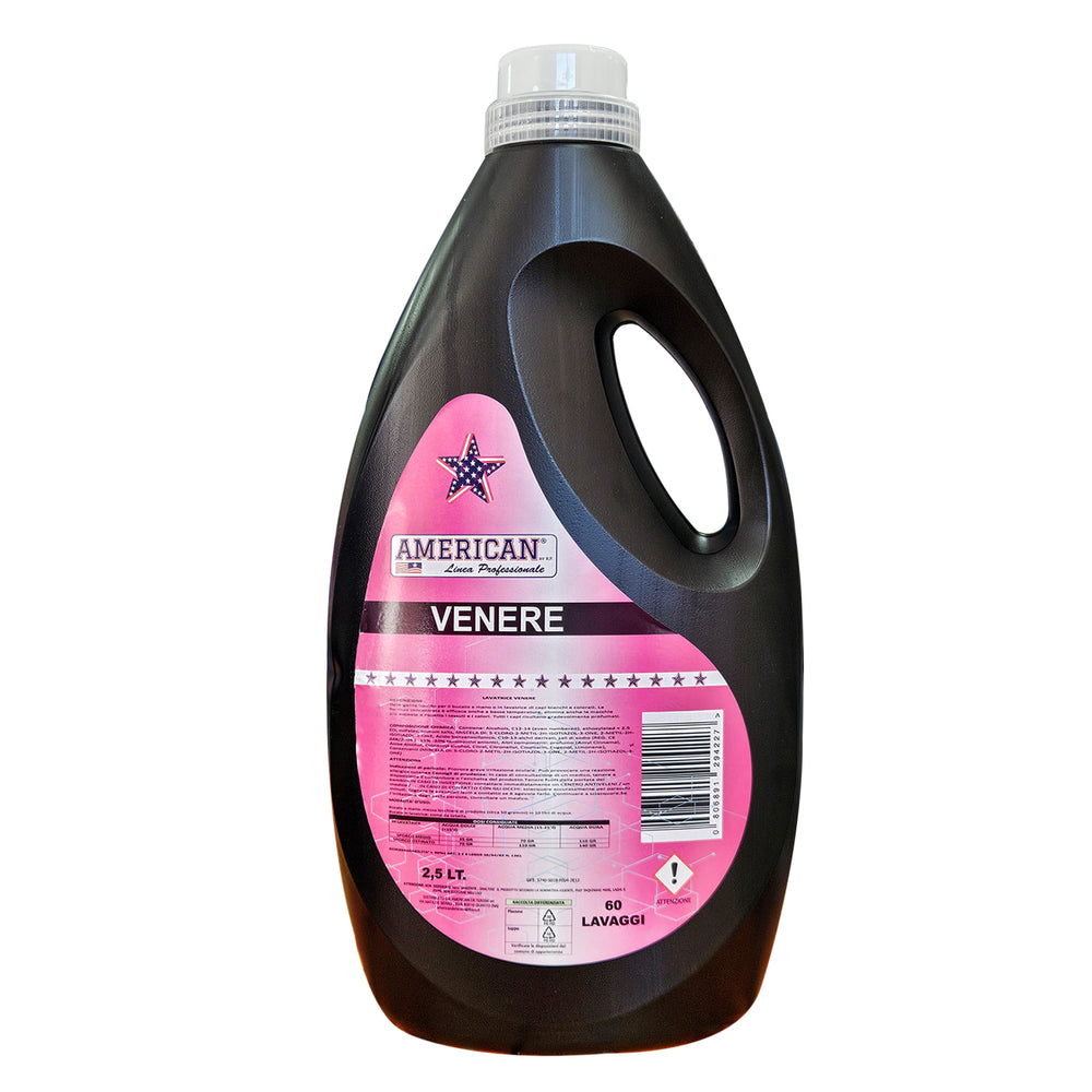 American Venere Flüssigwaschmittel vereint Reinigungskraft und einen intensiven Duft für makellos saubere Wäsche. Dank seiner professionellen Formel entfernt es selbst hartnäckigsten Schmutz und schont dabei Fasern und Farben. Der sinnliche und langanhaltende Duft „Venere“ umhüllt die Textilien und sorgt für langanhaltende Frische. Ideal für weiße und bunte Wäsche.
