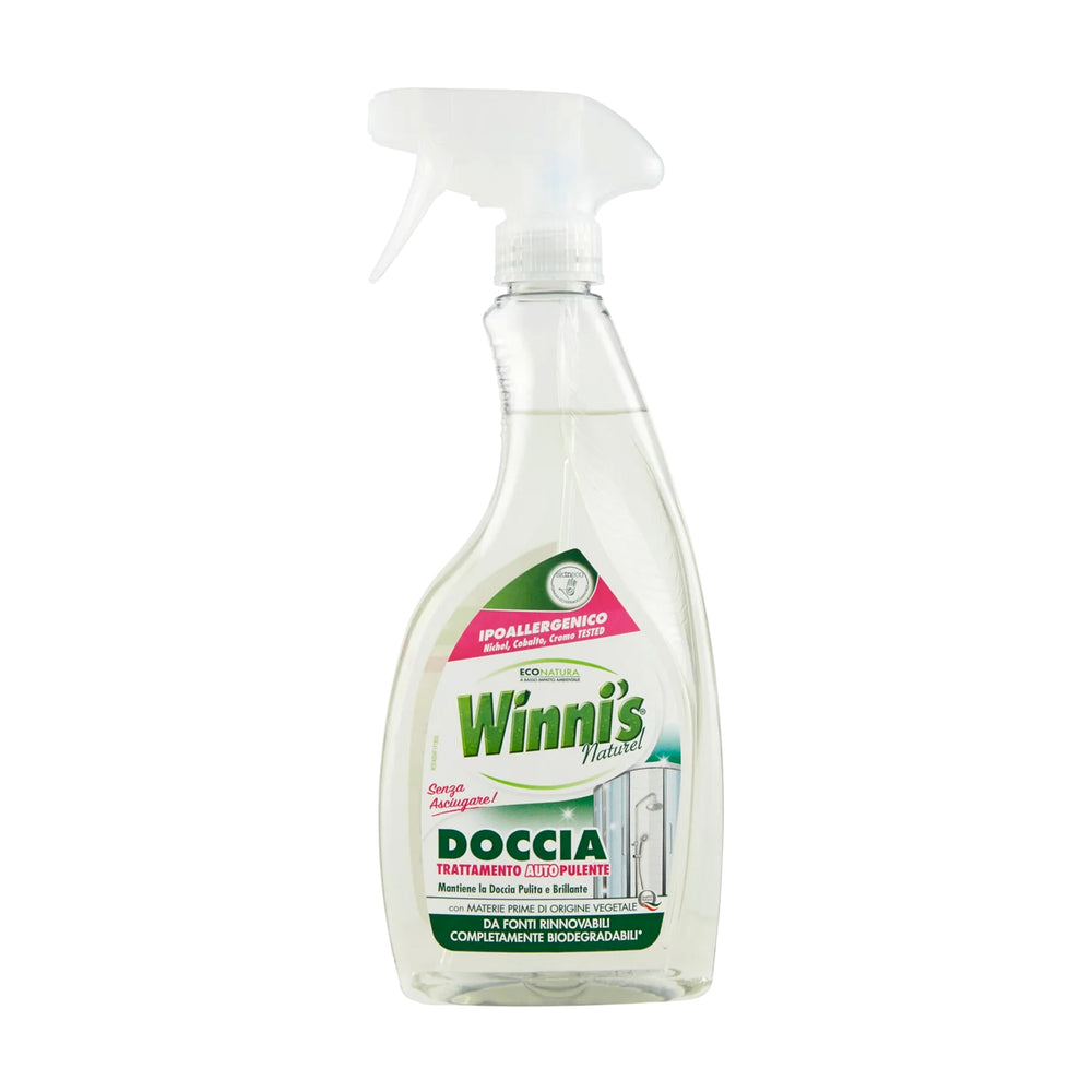 WINNI'S Duschspray wurde für die tägliche Reinigung von Duschkabinen und Badezimmeroberflächen entwickelt. Es entfernt Rückstände und sorgt für ein sauberes und angenehmes Ambiente. Praktisch nach dem Duschen oder während der routinemäßigen Reinigung anzuwenden, hält es Oberflächen schnell und einfach in Topform.