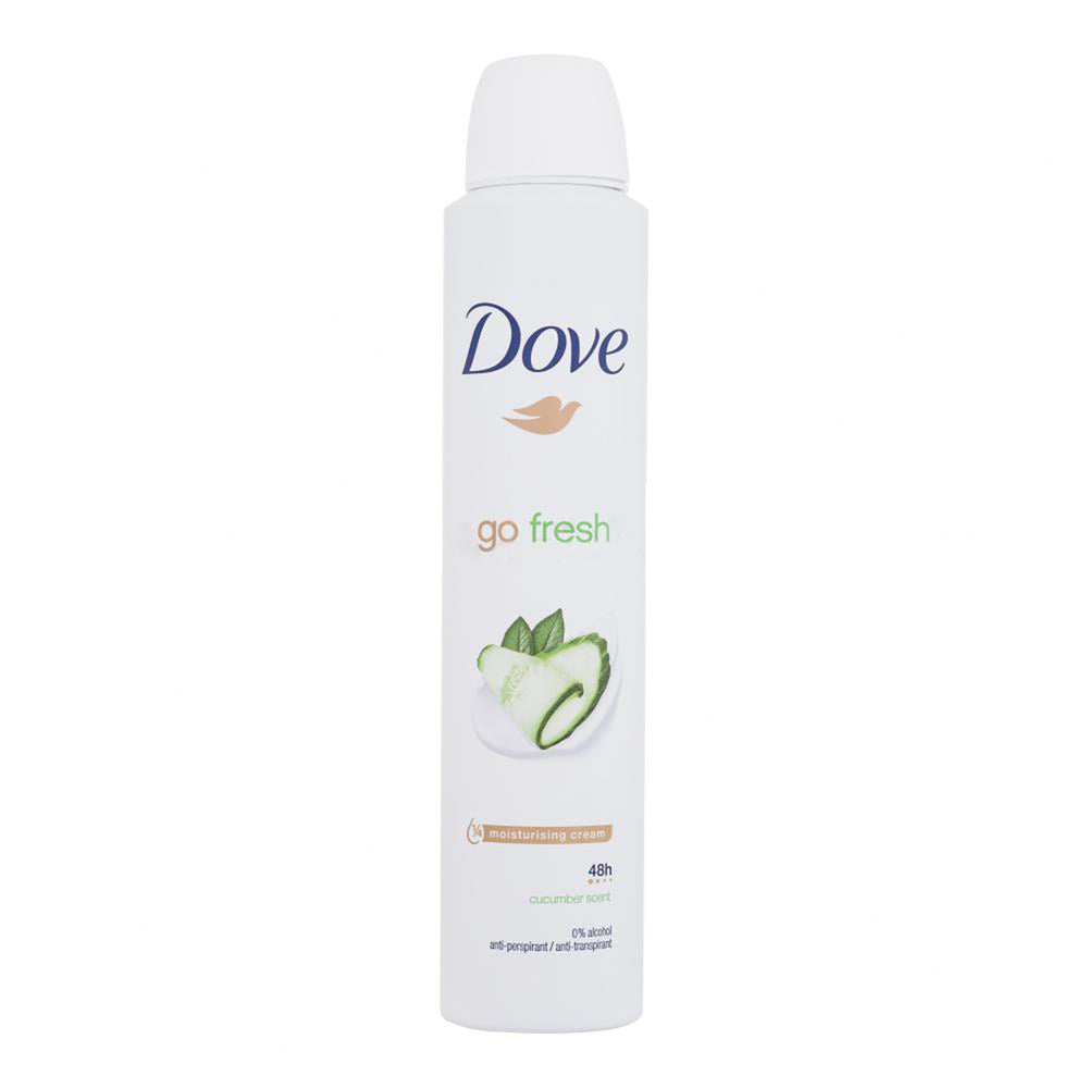 Dove Go Fresh Cucumber and Green Tea Spray Deodorant offers effective protection against sweat and odor for up to 72 hours. Its advanced formula with Triple Moisturizing Technology helps keep underarm skin soft and hydrated, preventing irritation even after shaving. The fresh, light cucumber and green tea fragrance leaves you feeling clean and vital all day long.